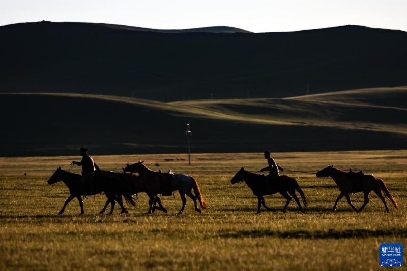 8月18日,在蒙古國(guó)泰吉山谷,牧人將自己的馬匹收攏。