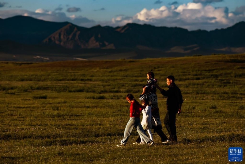 散去了白天的喧囂,距離蒙古國(guó)首都烏蘭巴托40多公里的泰吉山谷又恢復(fù)了往日的寧?kù)o,夕陽(yáng)給山谷和牧場(chǎng)披上了金色的盛裝。參加2023年度“游牧民族”世界文化節(jié)的人們,有的選擇在此宿營(yíng),等待次日繼續(xù)參加文化節(jié)的各種活動(dòng),有的選擇駕車返回烏蘭巴托或附近的牧點(diǎn)。牧人們將放牧的馬匹收攏并帶回家中,不知疲倦的孩子們繼續(xù)在夕陽(yáng)中嬉戲打鬧。