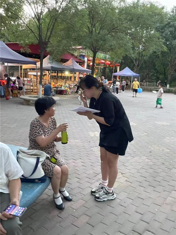 隨著大數(shù)據(jù)、互聯(lián)網(wǎng)、人工智能等信息技術(shù)的快速發(fā)展,老年人面臨“數(shù)字鴻溝”的問題已經(jīng)暴露,而近些年的政府工作報(bào)告中亦提及 “推進(jìn)智能化服務(wù)要適應(yīng)老年人的需求,并做到不讓智能化工具給老人的日常生活造成障礙”。為有效了解身邊老年人在運(yùn)用智能化技術(shù)方面遇到的困難以及智能化問題對(duì)其主觀幸福感的影響,2023年7月2日晚,首都經(jīng)濟(jì)貿(mào)易大學(xué)老年人智能化適應(yīng)社會(huì)實(shí)踐團(tuán)隊(duì)前往北京市豐臺(tái)區(qū)科技園生態(tài)主題公園進(jìn)行社會(huì)實(shí)踐調(diào)研,通過面對(duì)面的半訪談式調(diào)研了解該社區(qū)內(nèi)老年人的智能化適應(yīng)程度以及對(duì)其主觀幸福感的影響。