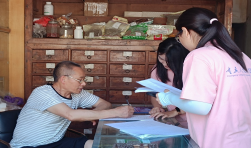 圖為實(shí)踐團(tuán)成員為村民解讀問(wèn)卷 熊承馨 拍攝