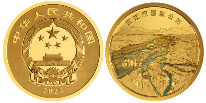 官方透露,三江源、大熊貓國家公園金銀紀(jì)念幣使用了鏡面底面、多層次噴砂、浮雕、光變鱗彩和彩噴等工藝。我們根據(jù)國家公園系列兩套紀(jì)念幣的實(shí)物圖來解析一下我國金銀紀(jì)念幣的工藝水準(zhǔn)。