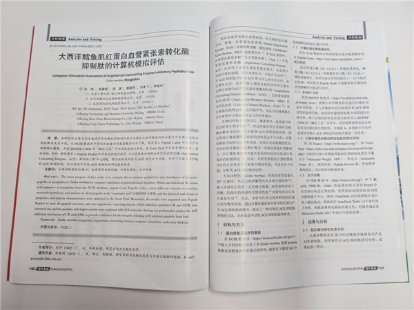此次俏美韻與北京工商大學(xué)的深度產(chǎn)學(xué)研融合是通過計(jì)算機(jī)模擬胃腸消化的方法推定大西洋鱈魚的肌紅蛋白中生物活性肽出現(xiàn)的概率及其豐度。從 NCBI 數(shù)據(jù)庫中得到肌紅蛋白的氨基酸序列并下載,將其導(dǎo)入 Peptide Cutter 中選用不同的酶模擬酶解,并在BIOPEP-UWM 的“酶促工具”中對其短肽進(jìn)行分析,在 Toxin Pred 中分析其理化性質(zhì)、毒性特征。同時,將結(jié)果導(dǎo)入Peptide Ranker中對肽活性進(jìn)行排序,并從中篩選出兩種血管緊張素轉(zhuǎn)化酶酶(Angiotensin Converting Enzyme,ACE)抑制肽 CW 和 LFPK,將活性較高的肽與 ACE 進(jìn)行分子對接,分析了 CW 和 LFPK的 ACE 抑制機(jī)制,為從女性大健康產(chǎn)品中尋找 ACE 抑制肽的研究提供理論參考。