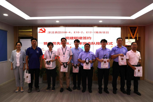 活動中,邱經(jīng)緯介紹了項目的基本建設(shè)情況;項目黨支部書記與陸家嘴集團黨辦代表簽署黨建聯(lián)建協(xié)議書;王韞向黨員先鋒隊、青年突擊隊授旗;南亮軍向兩支隊伍贈送書籍;王韞向工地建設(shè)者贈送高溫慰問品。