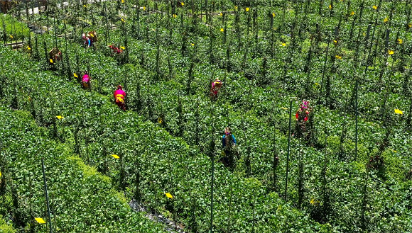 為此,茂縣摸索總結(jié)出一種全新的農(nóng)業(yè)種植新路徑——“三個(gè)一畝”種植模式。“三個(gè)一畝”簡(jiǎn)單來說就是“一畝穩(wěn)定糧、一畝高產(chǎn)果、一畝增收菜”。通過這種將一塊地掰成三塊種的模式,去年赤不蘇鎮(zhèn)年平均畝產(chǎn)值從過去0.3至1.3萬元,增加到去年2.5萬元,實(shí)現(xiàn)了增糧、增產(chǎn)、增效益三重目標(biāo)。