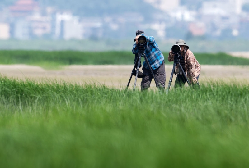 在閩江河口濕地國家級自然保護區(qū)核心區(qū),兩名觀鳥愛好者架起相機拍攝中華鳳頭燕鷗(2023年6月25日攝)。新華社記者 魏培全 攝