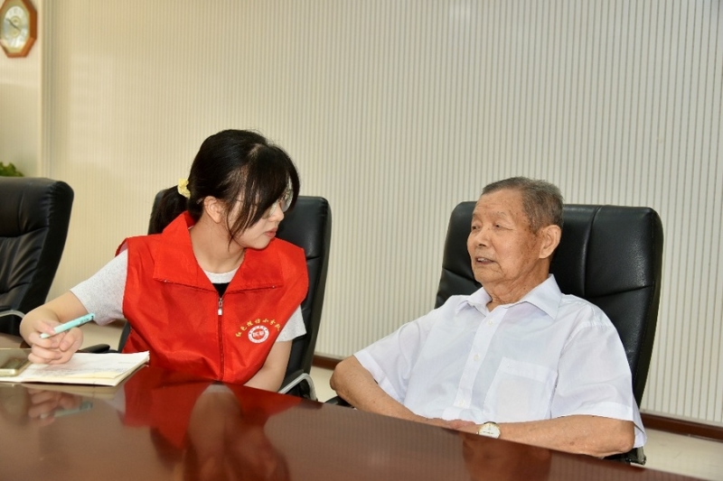 圖為“紅色探訪小分隊(duì)”實(shí)踐團(tuán)成員與老人交談 (徐州工程學(xué)院肖葉恬 攝)