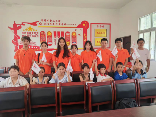 8月17日上午,推普實(shí)踐隊(duì)來(lái)到了村中小學(xué)開(kāi)展“典耀中華讀書(shū)行動(dòng)”系列活動(dòng),活動(dòng)第一階段由隊(duì)員郭婧婧上臺(tái)進(jìn)行普通話(huà)朗誦詩(shī)歌詩(shī)詞調(diào)動(dòng)孩子們參與活動(dòng)的積極性,隨后引領(lǐng)孩子們進(jìn)行“趣味繞口令”“成語(yǔ)猜猜猜”等趣味活動(dòng),培養(yǎng)孩子們學(xué)習(xí)標(biāo)準(zhǔn)漢語(yǔ)言文字的興趣,將學(xué)好普通話(huà)的種子埋在孩子心中。活動(dòng)第二階段由隊(duì)伍成員焦亨哲、蔡沁沛進(jìn)行讀書(shū)分享活動(dòng),分享優(yōu)秀讀物,培養(yǎng)孩子們的閱讀興趣。最后實(shí)踐隊(duì)隊(duì)員們贈(zèng)送精美文具、書(shū)籍,希望孩子們可以產(chǎn)生閱讀與寫(xiě)作的興趣。該日下午,實(shí)踐隊(duì)前往了當(dāng)?shù)丶t色基地——紅軍洞進(jìn)行參觀感悟,在螞蟥村書(shū)記的帶領(lǐng)下,志愿者們走進(jìn)紅軍洞探尋歷史文化古跡。一步一步爬上高山仿佛在追尋先烈的腳步,登高望遠(yuǎn)欣賞先烈?jiàn)^斗而來(lái)的大好河山,熱血沸騰的少年們心中對(duì)先烈的感激與敬重之火倏然燃起。實(shí)踐隊(duì)隊(duì)員林怡彤發(fā)出感慨:不至紅軍洞,不知紅軍苦。我們當(dāng)今學(xué)子作為祖國(guó)的未來(lái),應(yīng)該以身作則,以身實(shí)踐,踐行國(guó)家領(lǐng)導(dǎo)方針,以熱情積極的態(tài)度去完成使命。