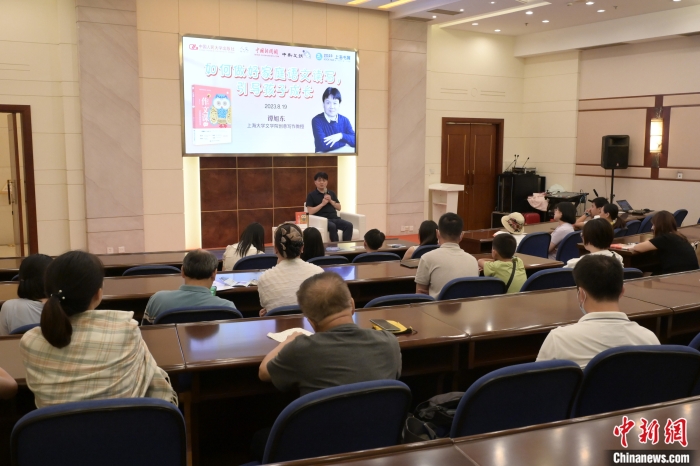 中新網(wǎng)8月22日電 8月19日晚,魯迅文學(xué)獎得主、上海大學(xué)文學(xué)院教授、博士生導(dǎo)師譚旭東攜新作《作文課:讓創(chuàng)意改變作文》,走進(jìn)上海書展,暢談家庭語文教育。譚旭東以自己多年指導(dǎo)中小學(xué)語文教育的經(jīng)歷與大家分享:家庭語文讀寫的培養(yǎng),對孩子的成長和語文的進(jìn)步,都非常關(guān)鍵。
