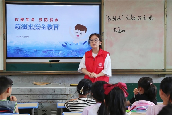 圖為實踐團成員給留守兒童講述防溺水的安全知識。李韓輝 攝