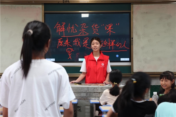圖為實踐團成員給留守兒童上“解憂雜貨課”。李韓輝 攝
