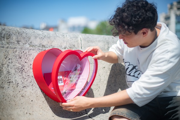 這個應(yīng)急玫瑰裝置無論是放在哪個街頭,都是非常亮眼的存在。代表愛情元素的心形紅色外觀遠遠望去就能被抓住眼球,讓不少路人紛紛前往一探究竟。