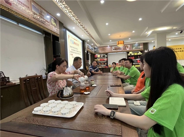 實踐團(tuán)隊與鴻鼎茶業(yè)李志鴻董事長開展座談(8.10鴻鼎茶業(yè) 吳彬攝)
