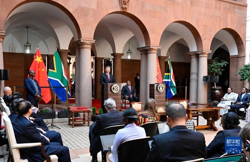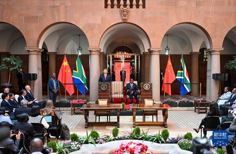 當(dāng)?shù)貢r(shí)間8月22日中午,國家主席習(xí)近平在比勒陀利亞總統(tǒng)府同南非總統(tǒng)拉馬福薩會(huì)談后共同會(huì)見記者。