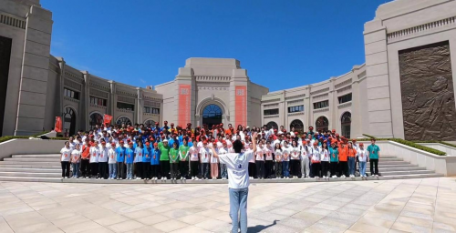 圖為所有實(shí)踐團(tuán)隊(duì)在延安文藝紀(jì)念館前合唱《黃河大合唱》