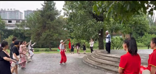 圖為文化廣場(chǎng)前練習(xí)打腰鼓