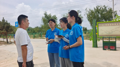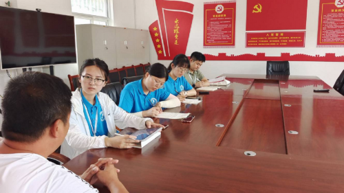 圖為實(shí)踐隊(duì)員采訪南溝村三委會(huì)監(jiān)委會(huì)主任李金亮