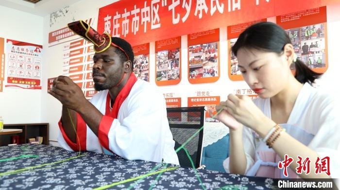 棗莊市市中區(qū)則邀請外國友人參加七夕“賽巧”活動,讓外國友人近距離感受中國傳統(tǒng)節(jié)日“乞巧節(jié)”的獨特文化魅力?;顒又?,來自意大利的外國友人艾佛身著漢服進行各類趣味游戲比拼。在“穿針引線”現(xiàn)場可以看到,參賽者一只手緊捏線頭,一只手穩(wěn)穩(wěn)拿針,目不轉(zhuǎn)睛盯著針眼,大家你追我趕,樂在其中。在“投壺雅射”現(xiàn)場,一支支木箭有的散落在地,有的穩(wěn)穩(wěn)落入壺中,現(xiàn)場不時響起陣陣喝彩聲、歡呼聲。