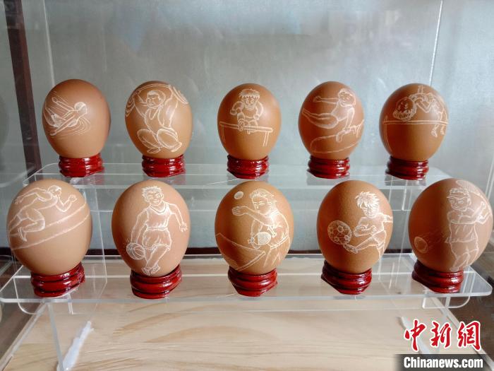 中新網(wǎng)紹興8月22日電(項菁 周奇鵬)乒乓球、足球、籃球、舉重、游泳……一只只薄而脆的蛋殼上,十個體育項目的運(yùn)動員形象躍然“殼”上。這是56歲下肢殘疾民間藝人李小和的最新作品。