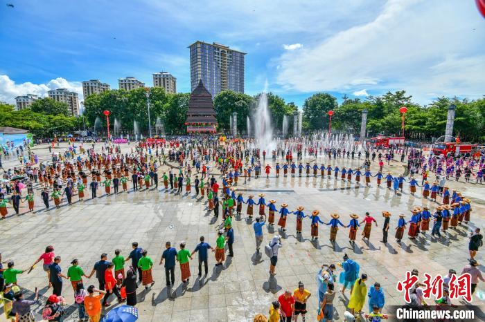 嬉水節(jié)活動現(xiàn)場,臺灣同胞與當?shù)孛癖娨坏垒d歌載舞歡度“七夕”?!●樤骑w 攝
