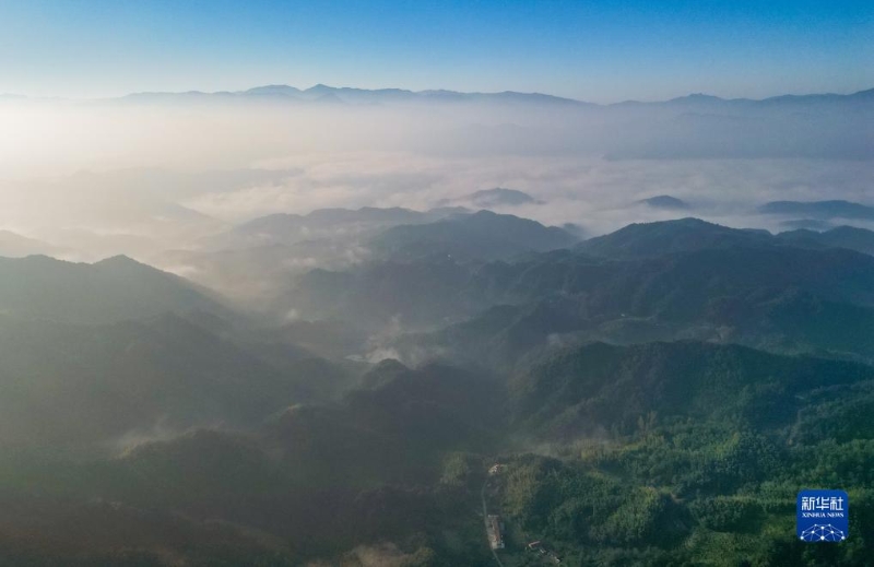 當(dāng)日早晨,地處大別山區(qū)腹地的安徽省六安市霍山縣漫水河鎮(zhèn),出現(xiàn)云海盛景,美不勝收。
