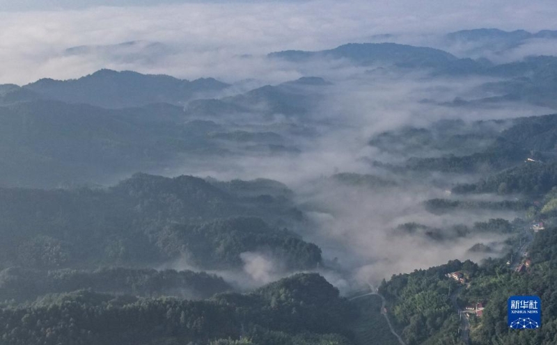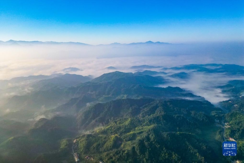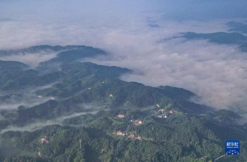 這是8月23日航拍的安徽省六安市霍山縣漫水河鎮(zhèn)附近的云海。