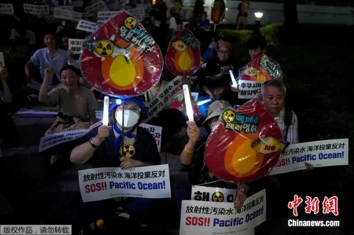 當(dāng)?shù)貢r(shí)間22日,大批韓國(guó)民眾在日本駐韓國(guó)大使館門前集會(huì),他們手持“堅(jiān)決反對(duì)福島核污水排海!”“要求日本撤回核污染水排海計(jì)劃!”等標(biāo)語(yǔ),譴責(zé)日方的排海計(jì)劃。