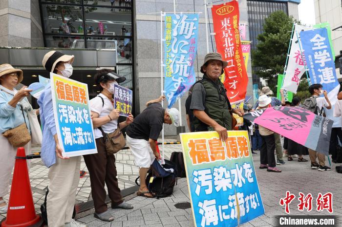 24日,日本多個市民團(tuán)體聚集在東電公司總部附近,強(qiáng)烈反對日本政府當(dāng)天啟動福島核污染水排海作業(yè)。參加集會的民眾手持寫有“別把核污染水排入大?!钡葍?nèi)容的橫幅標(biāo)語,高喊“停止排?!薄皠e再污染大?!钡瓤谔?,表達(dá)堅(jiān)決反對核污染水排海的立場。