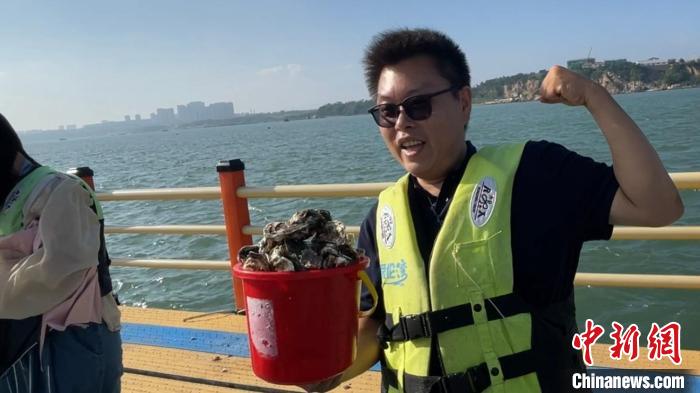提著一桶剛剛親手“采摘”的牡蠣,中國科學(xué)院大學(xué)經(jīng)濟(jì)與管理學(xué)院教授顧立平舉起手機(jī)拍照“打卡”。工作人員介紹,海洋牧場采用“多營養(yǎng)層次綜合立體養(yǎng)殖”模式,同時發(fā)展水面藻類、水中貝類、水底人工魚礁的立體養(yǎng)殖,每畝年均收益提升30%左右。“如果說傳統(tǒng)水產(chǎn)養(yǎng)殖是‘薄田’,那現(xiàn)在的海洋真是一片‘沃土’!”顧立平感慨。