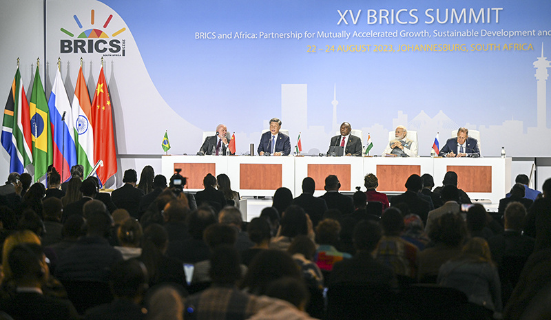 當(dāng)?shù)貢r間8月24日上午,在金磚國家同非洲國家及其他新興市場和發(fā)展中國家領(lǐng)導(dǎo)人對話會上,習(xí)近平主席發(fā)出倡議,“攜手構(gòu)建發(fā)展共同體,不讓任何一個國家在世界現(xiàn)代化進程中掉隊!”