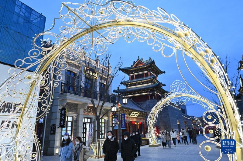 游人在太原市鐘樓街游覽(2023年1月16日攝)。新華社記者 詹彥 攝