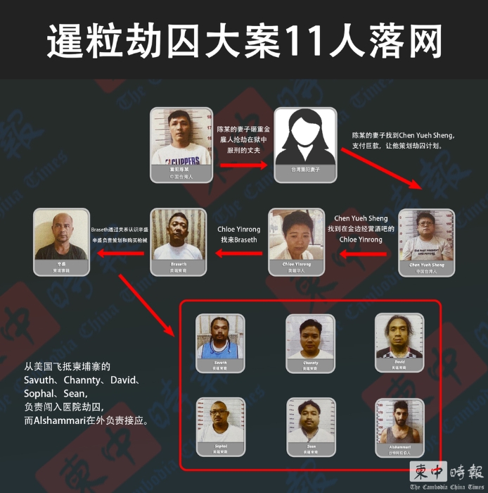 中新網(wǎng)8月24日電 據(jù)柬埔寨《柬中時(shí)報(bào)》報(bào)道,8月17日5名蒙面武裝歹徒在柬埔寨暹粒市一家牙科醫(yī)院襲擊押送囚犯的獄警,劫走中國臺(tái)灣籍囚犯陳某。柬警方23日通報(bào),截至23日上午,共有11名嫌犯(10男1女)已落網(wǎng),包括被劫走的陳某。柬警方表示,陳某的妻子不惜砸重金,雇用美國黑幫搶劫在獄中服刑的丈夫。