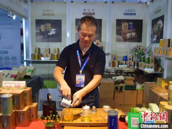 8月24日,劉耀楚在展位泡茶待客。劉棟 攝