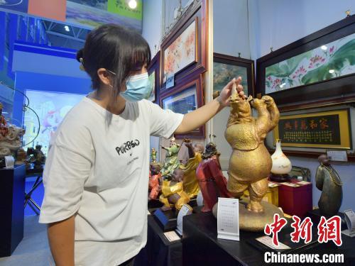 8月24日,參觀者在展會上選購臺灣工藝品。劉棟 攝