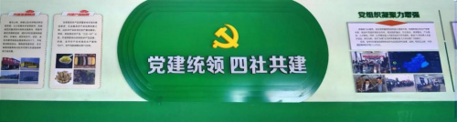(圖為四社共建服務(wù)中心關(guān)于“黨建統(tǒng)領(lǐng),四社共建”的宣傳欄)
