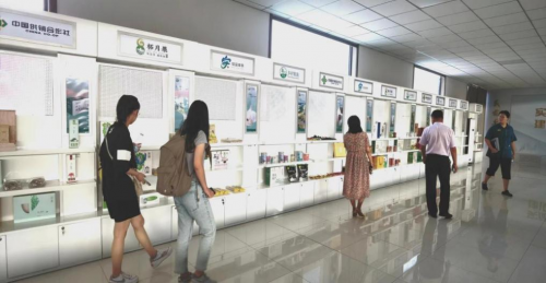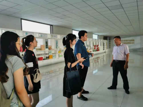 (圖為調(diào)研組成員參觀四社共建服務(wù)中心陳列的鄉(xiāng)村振興特色品牌特產(chǎn))