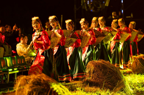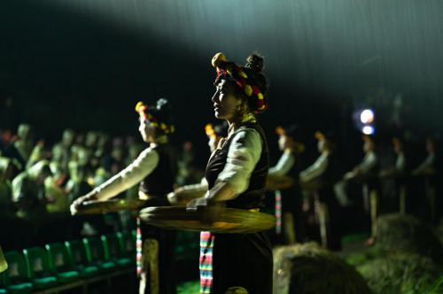 68畝的藏鄉(xiāng)土地化身超視覺實(shí)景舞臺(tái),138名本土演員及青德鎮(zhèn)村民勇挑大梁,此外還有本土山歌非遺傳承人,笑宴非遺傳承人等親情演出,震撼的實(shí)景,多變的燈光,樸實(shí)的演員,最接地氣的舞臺(tái)以及富有民族特色的音樂,無不表達(dá)著當(dāng)代鄉(xiāng)城人民的幸福生活。