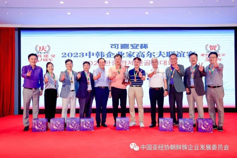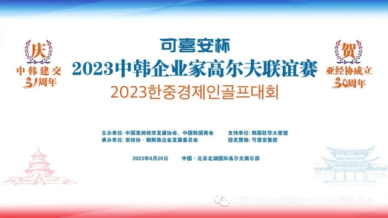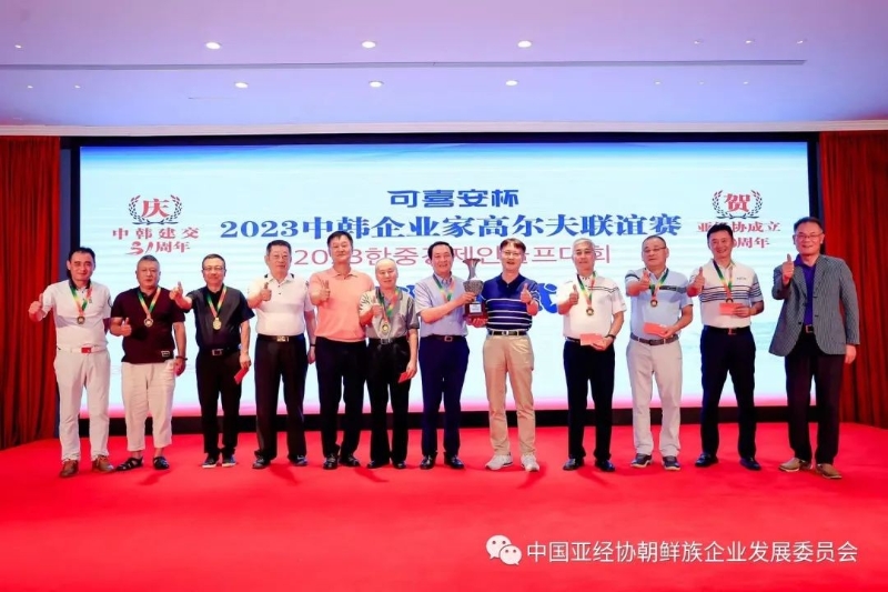 2023年8月20日,由中國亞洲經(jīng)濟發(fā)展協(xié)會、中國韓國商會聯(lián)合主辦,亞經(jīng)協(xié)·朝鮮族企業(yè)發(fā)展委員會承辦的“可喜安杯” 2023中韓企業(yè)家高爾夫聯(lián)誼賽在北京北湖國際高爾夫俱樂部隆重舉行。本次活動由我會顧問樸杰董事長的可喜安集團冠名贊助,韓國駐華大使館支持。