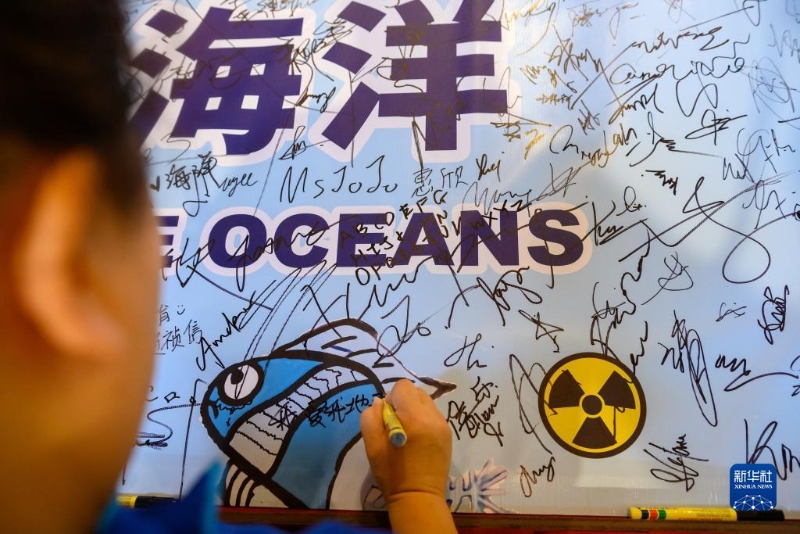 8月27日,在馬來西亞雪蘭莪州士毛月,人們?cè)诩瘯?huì)上簽字,反對(duì)日本核污染水排海。