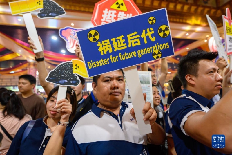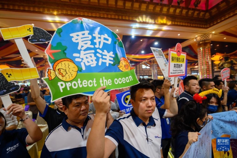8月27日,在馬來西亞雪蘭莪州士毛月,人們參加反對(duì)日本核污染水排海的集會(huì)。