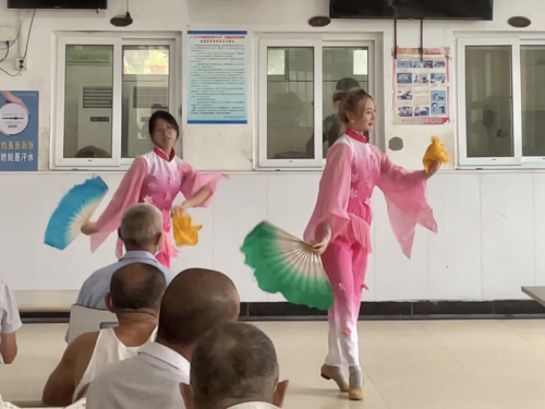 在醫(yī)療文藝慰問撮鎮(zhèn)鎮(zhèn)敬老院中,我們直面感受到了老年人的身體健康問題,期間我們?yōu)榫蠢显旱睦先藗冎驹笢y量了血糖血壓與推拿按摩,同時(shí)也對他們的身體健康與疾病進(jìn)行了了解與記錄,用來充實(shí)我們的調(diào)研背景數(shù)據(jù)。此外我們也十分重視老年人的精神療養(yǎng),我們的三下鄉(xiāng)團(tuán)隊(duì)準(zhǔn)備的文藝匯演讓爺爺奶奶們連連稱贊,其中我參與表演的花鼓戲《好一個(gè)花鼓燈》更是讓爺爺奶奶們開懷大笑。當(dāng)看到他們滿是皺紋的臉上洋溢著發(fā)自內(nèi)心的笑容,渾濁的眼睛中散發(fā)著慈愛的光芒,那一刻,我覺得整天的辛苦奔波都是值得的,都是有著億萬分意義的。