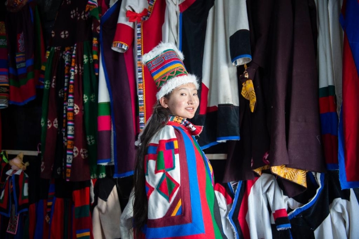 即將奔赴千里之外,邊巴瓊吉并沒有忘記從小陪伴在她身邊的森郭服飾。穿上父親親手制作的森郭服飾,她心情激動:“森郭服飾有著深厚的底蘊,我會帶一套到學校。用森郭服飾來介紹我的家鄉(xiāng)時,我將感到無比驕傲和自豪。五彩的森郭服飾,未來會更鮮艷。”