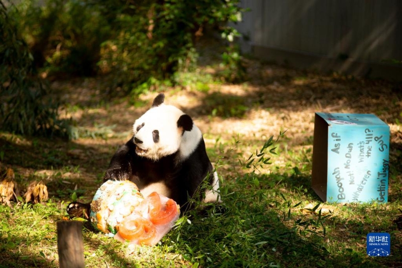 當(dāng)日,雄性大熊貓“添添”在美國首都華盛頓史密森學(xué)會(huì)國家動(dòng)物園迎來26歲生日。