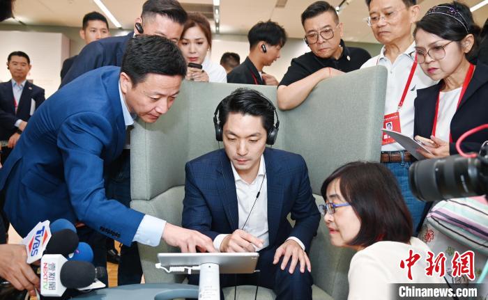 蔣萬(wàn)安坐到一處座椅,戴上耳機(jī)體驗(yàn)?!斑@里也太享受了吧”,戴著耳機(jī)的蔣萬(wàn)安感嘆。在館員的指引下,他試聽了一段戲曲唱段《林四娘》,一度閉目沉浸。