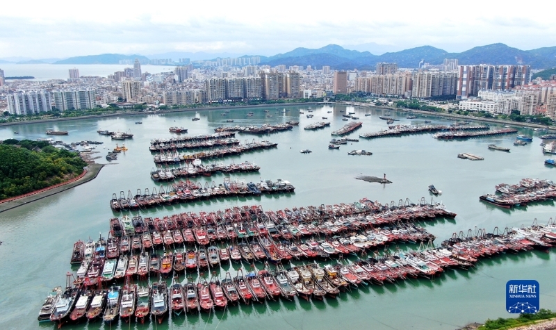 8月31日,廣東省汕尾市城區(qū)天空陰云密布,大量漁船歸港避風(fēng)。新華社記者 詹奕嘉 攝