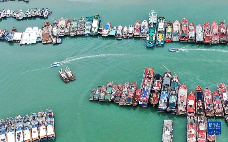 8月31日,在廣東省汕尾港避風(fēng)塘,漁船歸港避風(fēng),漁民陸續(xù)撤離。新華社記者 盧漢欣 攝