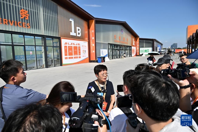 8月31日,工作人員向媒體介紹服貿(mào)會首鋼園區(qū)情況。