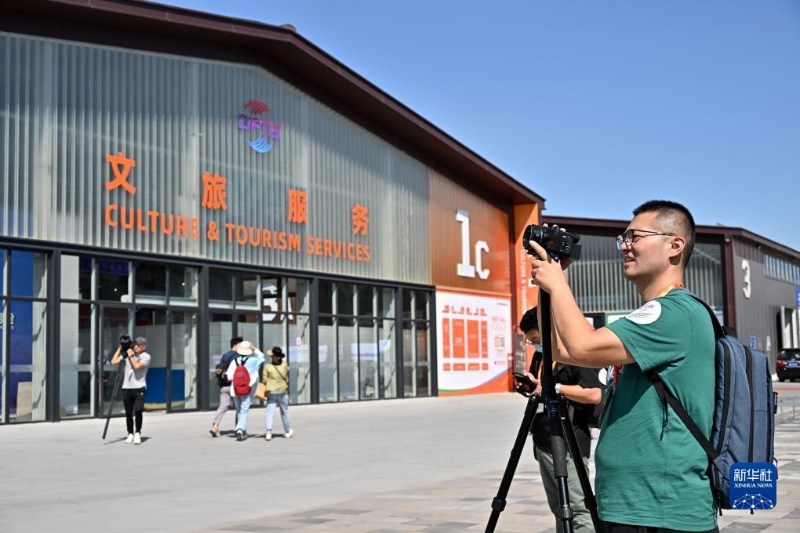 8月31日,參加探營活動的媒體記者在服貿(mào)會首鋼園區(qū)內(nèi)拍攝。