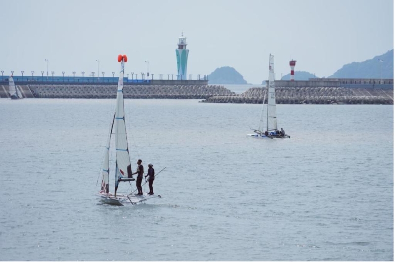 位于象山縣松蘭山旅游度假區(qū)內(nèi)的寧波象山亞帆中心,兩座防浪堤環(huán)抱著的一片風(fēng)平浪靜的內(nèi)灣里,一艘艘帆船陸續(xù)駛出,繞過燈塔后駛向大海。作為杭州亞運(yùn)會唯一涉及海域建設(shè)的比賽場館,這里將在9月20日迎來第一場比賽。