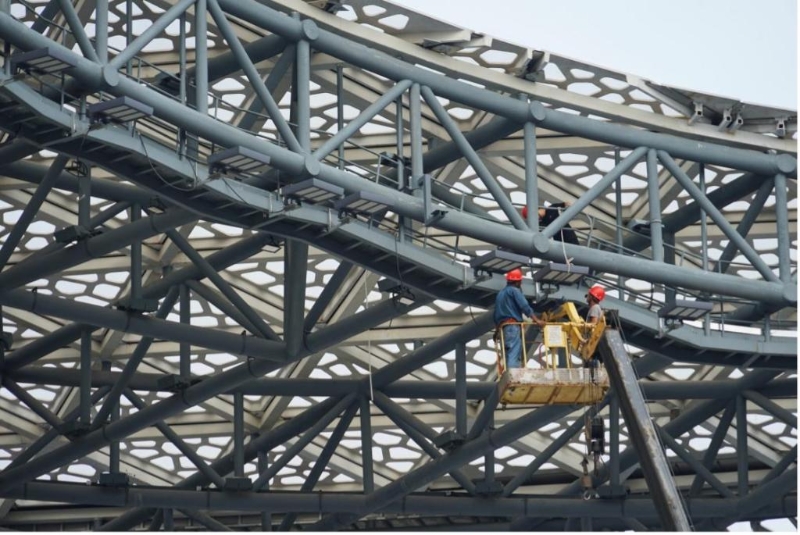 圖為工作人員在紹興柯橋羊山攀巖中心調(diào)整燈光布局。新華社記者林光耀攝
