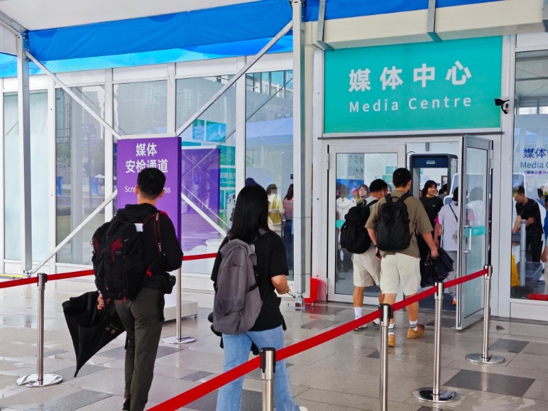 來到代表團(tuán)歡迎中心,經(jīng)過仔細(xì)的安檢流程,負(fù)責(zé)接待媒體的工作人員在給記者換發(fā)證件后不忘叮囑一句,“今天雨大,傘帶上了嗎?小心路滑!有任何需要幫助的地方,隨時給我打電話。”